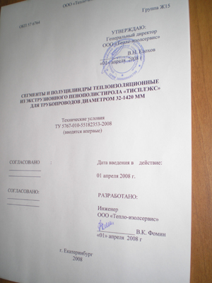В апреле 2008 года, введены в действие новые Технические Условия на теплоизоляционные сегменты и полуцилиндры из экструзионного пенополистирола Тисплэкс.