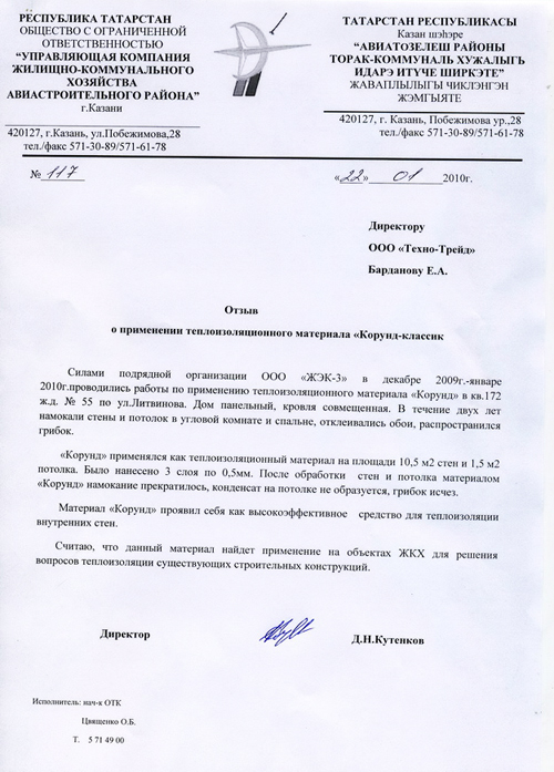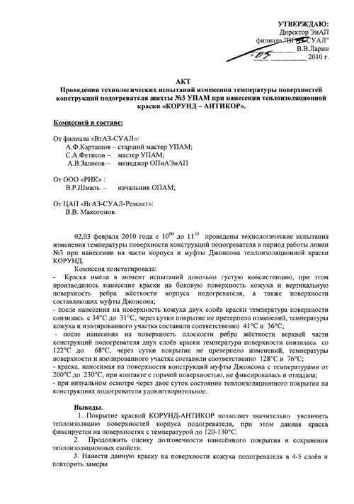 Ну а вот это уже более серьезный документ, где начальник одного серьезного отдела, а именно А.Г. Поршин -начальник отдела Федеральной службы по экологическому, технологическому и атомному надзору, нефтекамский территориальный отдел -подтвердил, что все заявленные свойства Корунд - соответсвуют заявленным